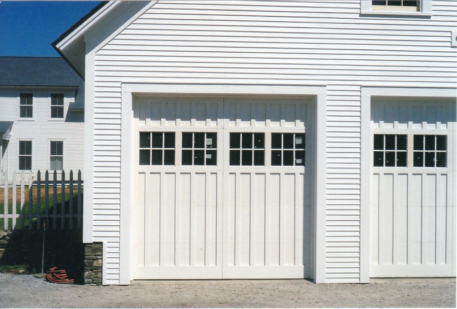 Some doors are meant to stand out, but these doors fit in so well you can hardly imagine this garage without them. Cedar turned rough side out provides the finish. A nice big garage.