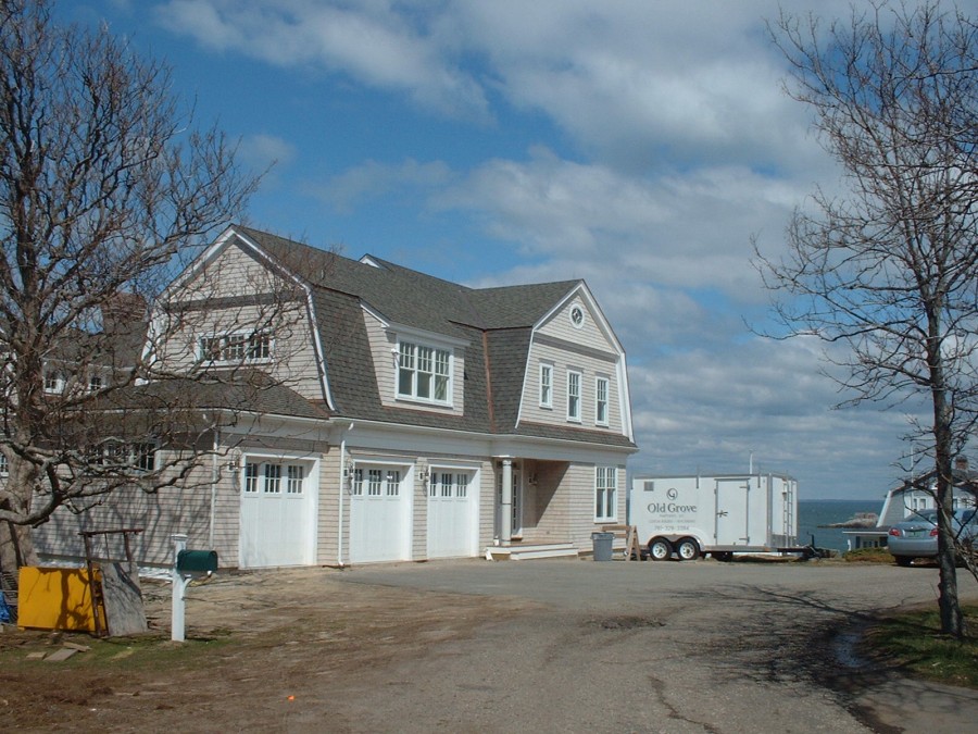 The door design is a copy of another manufacturer's door but with a much higher R value, a R16. As you can see in the photo above, themes in a home can also translate to the doors. For instance, the windows in these doors mirror the windows in the rest of the home, as well as maintain a classic 'New England' look.