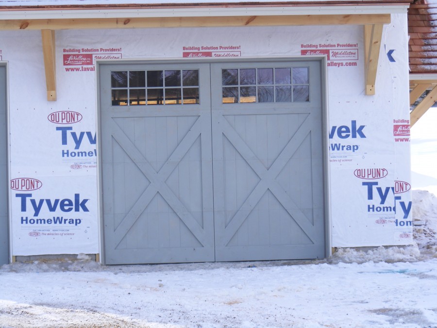 Doors delivered in primer. Glass is thermopane to cut down on condensation on these R6 doors. Not all the doors on this new building have windows, but the design repeats through both the doors with glass and without. Old or new construction, every building deserves to put its best face forward.