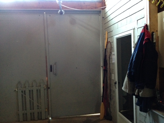 All our doors will open manually in a power out situation and stay up, no broom stick required, even here. The customers are wonderful folks who are looking forward to not having to shove the old door back & forth this winter.